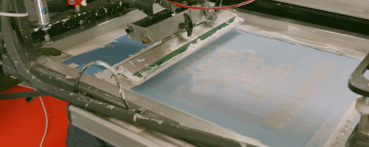 Colored inks are pushed through stencil-like silkscreens onto almost any type of fabric. This process can be applied to a variety of garments, including sweaters, hoodies, tote bags, posters, and more.